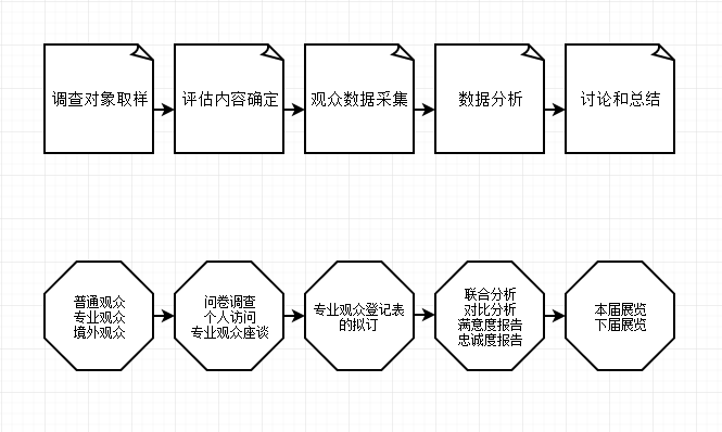 參觀觀眾的數(shù)量和質量直接反映了展覽的成效。觀眾數(shù)據(jù)分析,特別是專業(yè)觀眾和境外觀眾的數(shù)據(jù)分析對客戶關系的建立和發(fā)展有著重要的意義。觀眾數(shù)據(jù)分析不僅反應了觀眾的地區(qū)發(fā)布、行業(yè)構成及參展目的,更重要的是它客觀地反應了觀眾對展覽的期望值,為了完善展覽組織工作提供了決策依據(jù),因此成為目標參展選擇展覽的重要依據(jù)。觀眾數(shù)據(jù)分析流程如下。